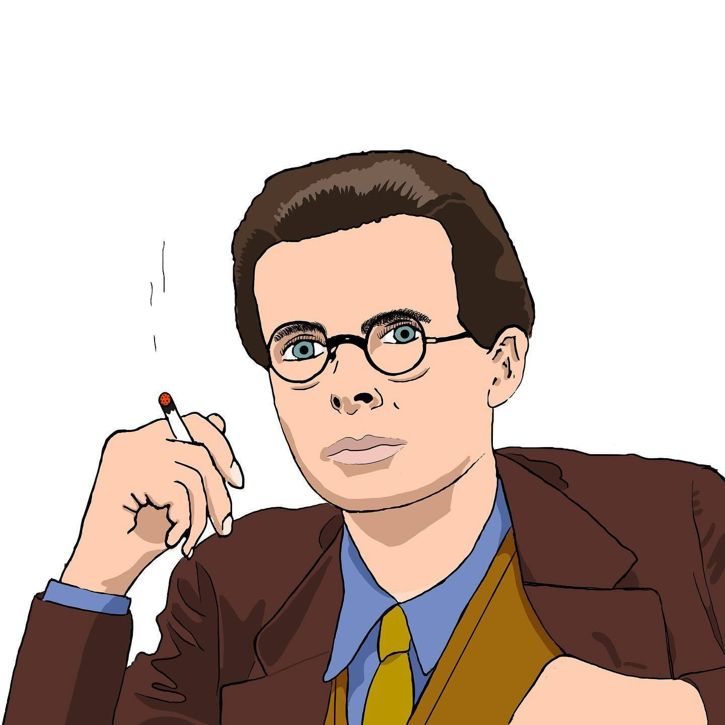 Aldous Huxley. English writer and philosopher. One of the first Western authors to write a detailed personal account of the psychedelic experience in The Doors of Perception. Line drawing with digital colour. #illustration #portrait #psychedelics #books #writing #philosophy