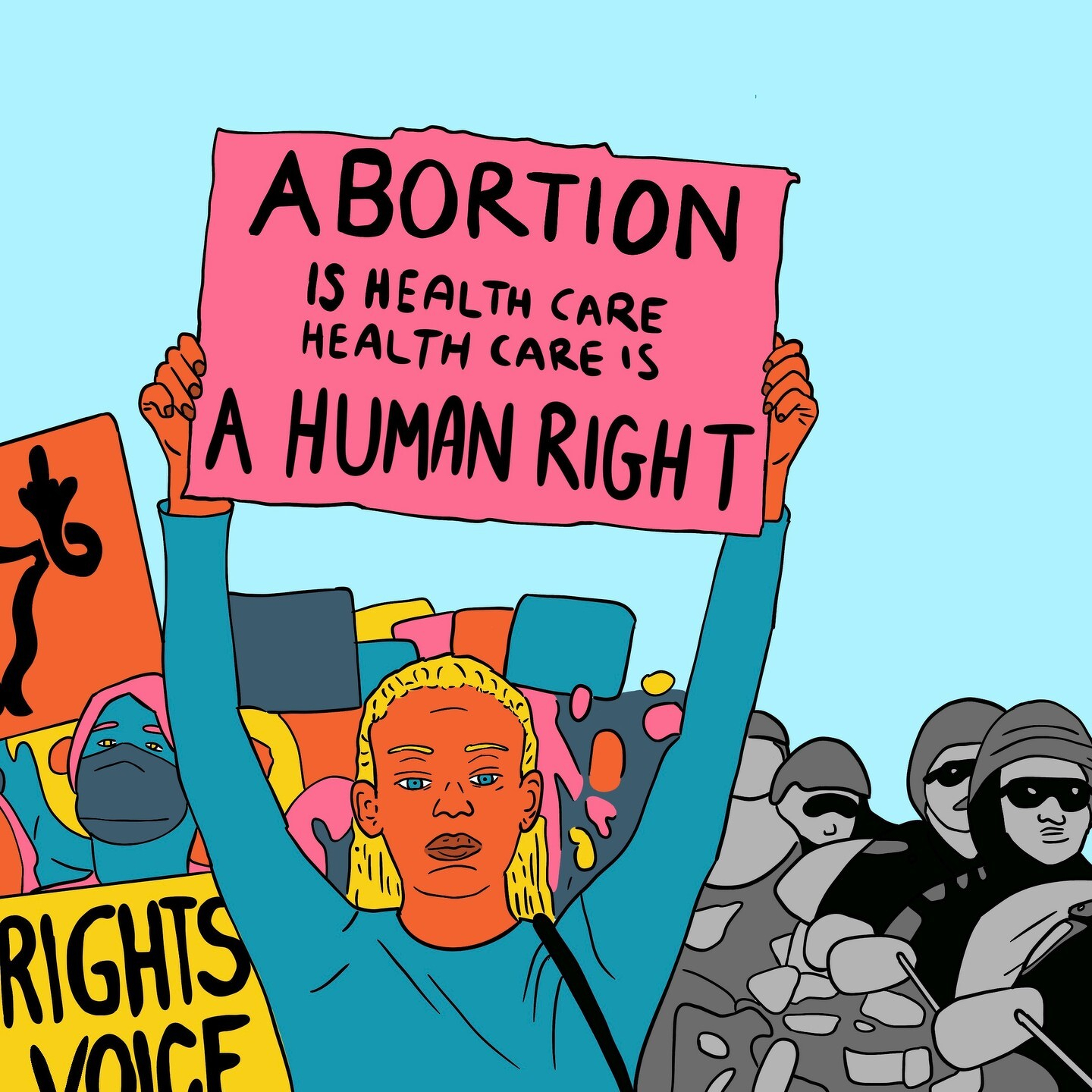 Reproductive rights protest in the US in response to Roe v. Wade being struck down (2022). Digital illustration. OC. #illustration #drawing #reproductiverights #prochoice #abortion #scotus