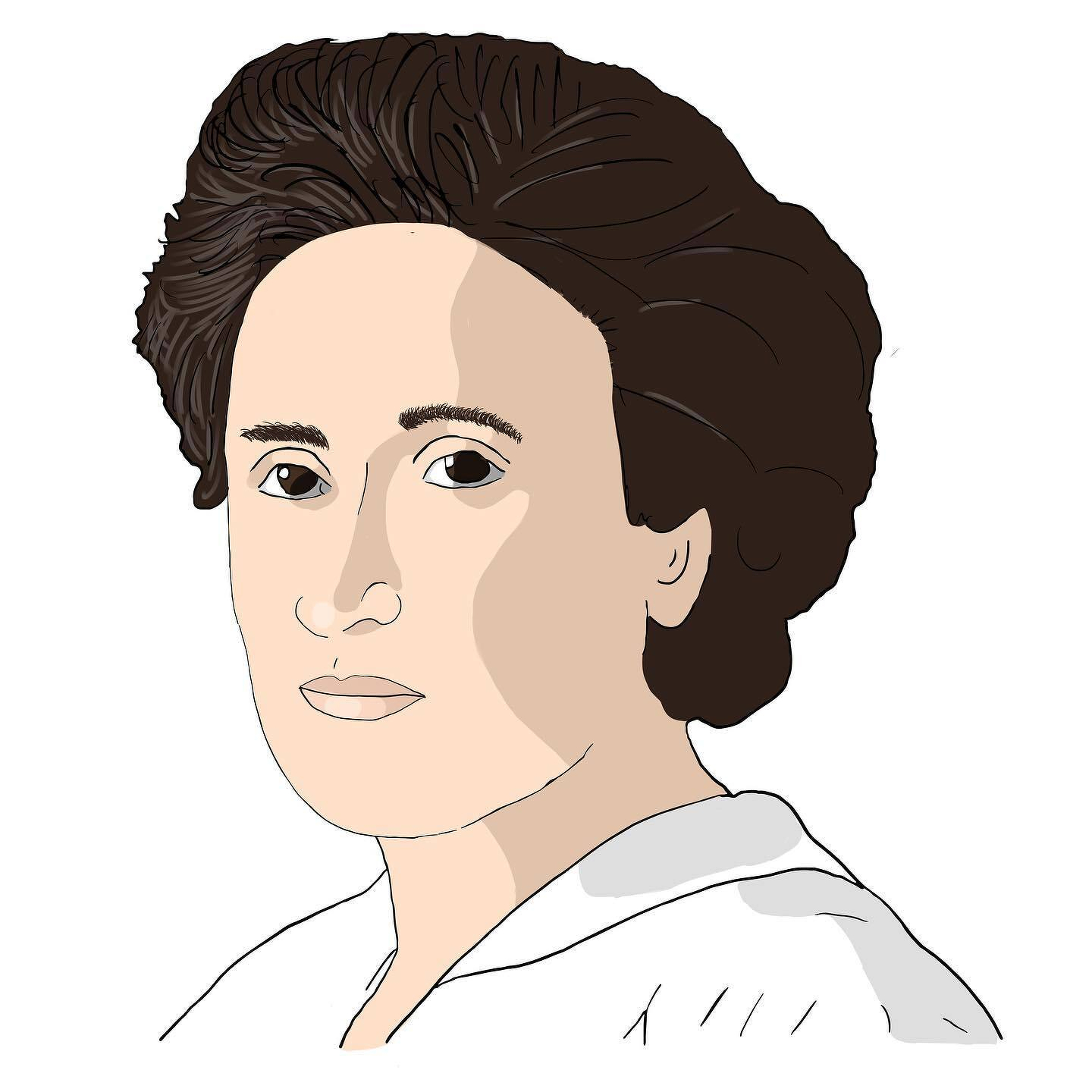 Rosa Luxemburg (1871–1919). Polish-German Marxist theorist, revolutionary socialist, and co-founder of the German Communist movement known for her advocacy of mass strike tactics and her opposition to both reformism and authoritarianism. Line drawing with colour. OC. #socialism #marxism #portrait